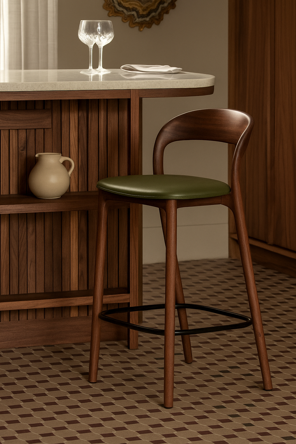 Hawkins Dark Green Leather Bar Stool With Wood Frame