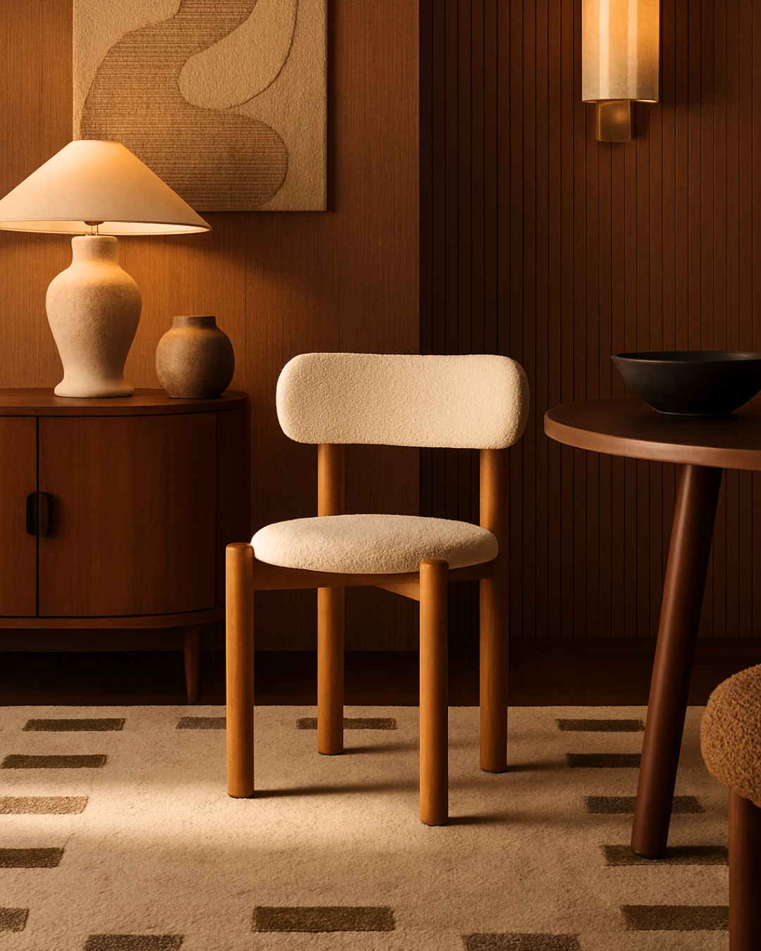 Sienna Walnut Wood And Boucle Dining Room Chair